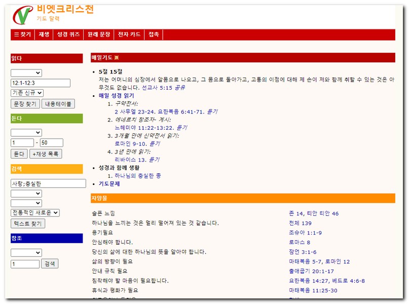 찾고자 하는 성경구절과 함께 읽기와 듣기를 모두 진행할 수 있다는점도 장점이다. 베트남어 그대로이기 때문에 번역하지 않으면 사용하는데 불편함이 존재할 수 있겠지만 사이트에 큰 이상한점은 없고 내용도 알차기 때문에 깊이 있는 성경말씀을 찾고자 한다면 방문해도 나쁘지는 않다.