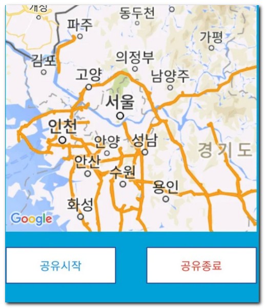 공유시작 버튼을 눌러서 URL이 생성되면 남자친구, 여자친구에게 해당 URL를 공유하게 되면서 본인의 위치가 어디에 있는지 알 수 있다.