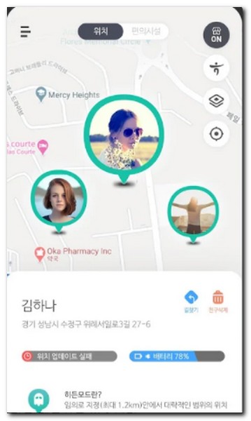 가족위치추적 어플로써 사용되는 앱인데, 연인 위치추적 어플, 커플 위치추적 어플로도 사용해도 이상하지 않다. 친구 지인들끼리 여행중일때 어디에 위치해 있는지 쉽게 파악하기 위해서 필요한 위치추적 앱이다.