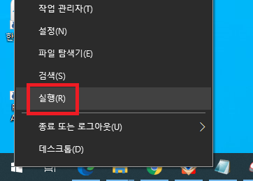 윈도우 + R 또는 윈도우 시작버튼에서 마우스 오른쪽 버튼을 클릭해서 실행창을 열어본다.