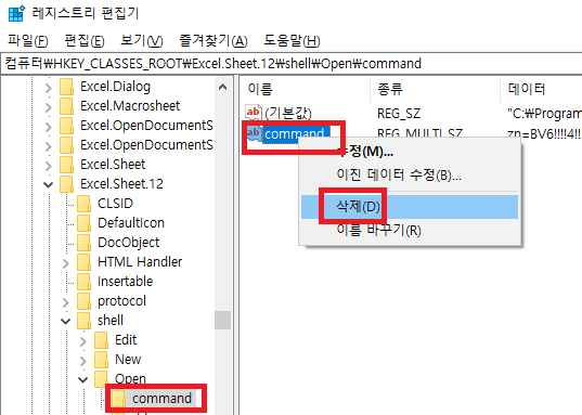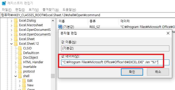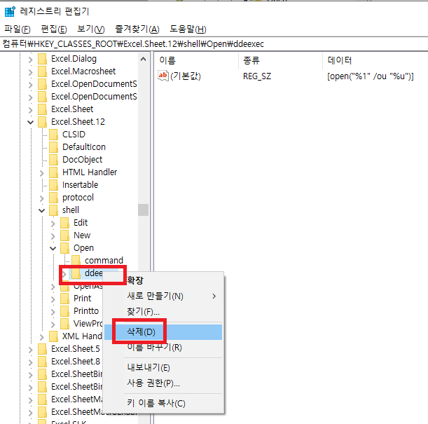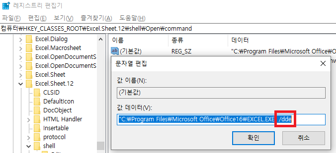 (기본값)이라고 적혀있는 부분을 마우스 오른쪽 버튼을 클릭해서 수정한다. /dde을 삭제하고 아래 수식으로 변경한다.