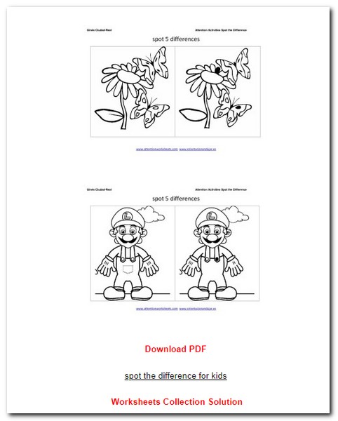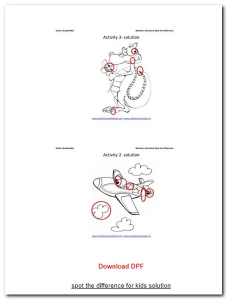 attentionworksheets.com 이라는 사이트에 접속하게 되면 흑백이지만 다양한 종류의 다른 그림 찾기 프린트 도안을 찾을 수 있다. PDF파일로 되어 있어서 다운로드 받은 후 프린터 해서 출력하면 된다.