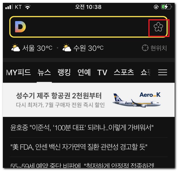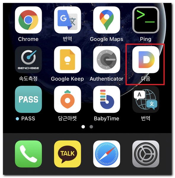 다음앱이 있는데, 아이폰 사용자라면 앱스토어에서 다운로드 받아 설치 가능하고, 갤럭시s21 핸드폰이라면 구글플레이스토어에서 무료 다운로드 가능하다. 다음 앱을 실행한다.