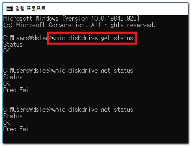 인터넷이 되지 않는 환경에서 디스크 상태점검을 해야될 경우 wmic diskdrive get status 명령어를 꼭 필요한 것이기 때문에 메모해서 사용하도록 하자.