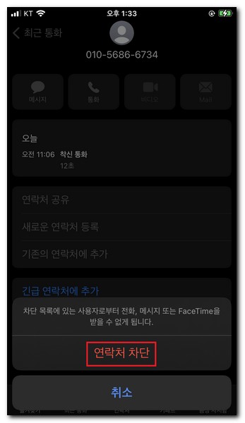 아이폰 모르는 전화번호 차단하기