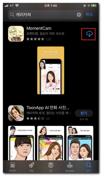 아이폰 사용자이기 때문에 아이폰 캐리커처 어플을 사용해서 캐리커처 그림 잘 그리도록 해보겠다. 우선 모멘트캠을 다운로드 받는다.