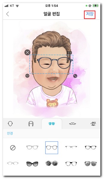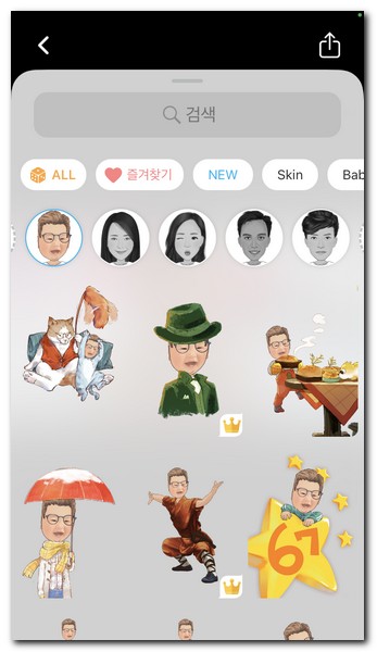 최종적으로 완료버튼을 터치하게 되면 다양한 모양의 아바타에 맞춰서 내가 만들고 그린 캐리커쳐의 모습을 대조해서 볼 수 있다. 다양한 포즈의 얼굴들이 보이는데 솔직히 너무 못그려서 쪽팔린다.