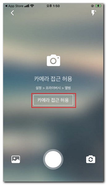 캐리커쳐를 그릴려면 아이폰의 카메라 접근 허용을 해줘야 된다. 카메라 접근 허용을 선택한다.