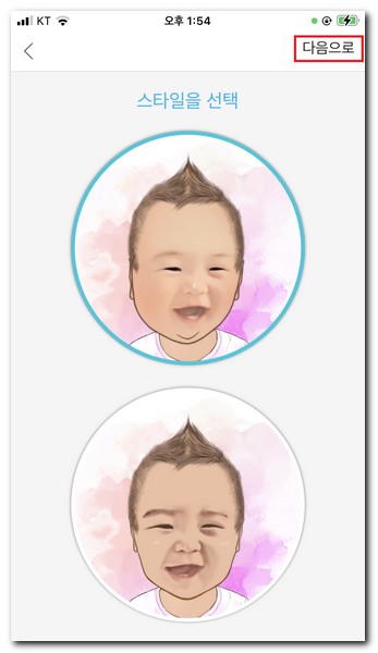 스타일을 선택하고 다음으로 버튼을 터치한다.