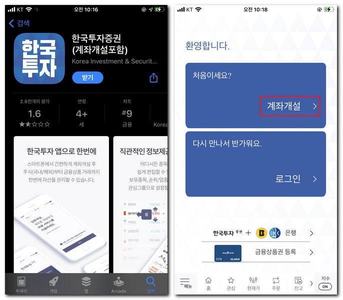 한국투자증권으로 계좌가 만들어졌다면 한국투자증권 앱을 다운로드 받아야된다. 아이폰, 삼성폰, 갤럭시폰 모두 가능하기 때문에 어플 다운로드를 받도록 하자.