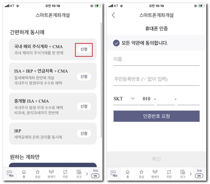 1) 모바일 핸드폰으로 주식통장 개설하기