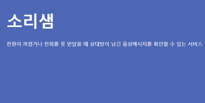 이럴때 상대방이 음성으로 메시지를 남기게 되면 들을 수 있도록 무료 서비스를 해주는게 소리샘 서비스다. 서비스 자체는 무료이지만 음성으로 들었을때는 통화요금이 부과된다.