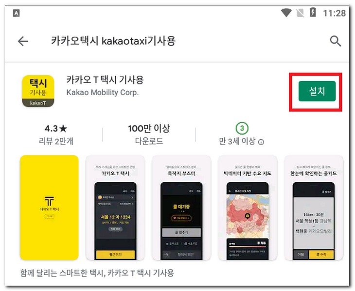 카카오택시 기사용 앱 설치