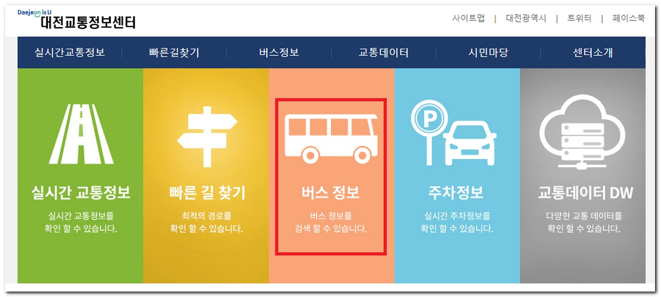 대전 시내버스 노선검색을 하려면 크게 2가지고 나뉠 수 있다. 첫번째는 대전교통정보센터에서 버스 정보를 실시간으로 확인할 수 있는 방법과 스마트폰 대전버스노선 어플을 다운로드 받아 설치하는 방법이다.