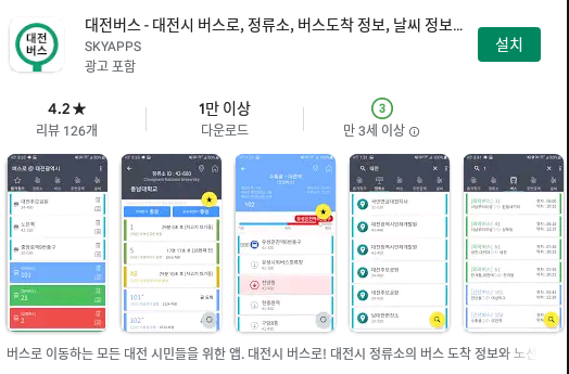 대전버스노선 어플 종류는 정말 많다. 그중에서 대전 시내버스 노선과 정류소, 버스도착정보, 추가적으로 날씨정보까지 제공해주면서 평점이 4.0 이상인 앱을 추천하고 싶다.
