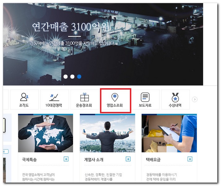경동화물 택배 영업소 조회를 하려면 경동택배 홈페이지에 접속해야된다.