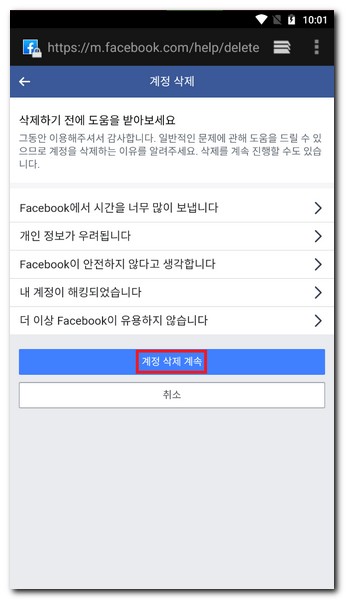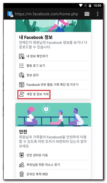 페이스북 탈퇴하는 방법(모바일)