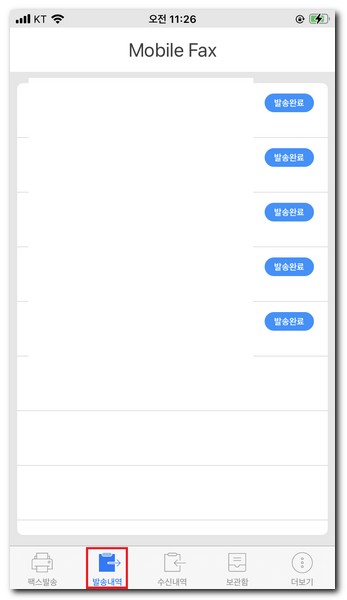 문서를 선택 한 후에 팩스 발송 버튼을 터치한다.