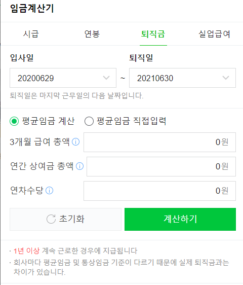 그리고 회사마다 평균임금 및 통산임금 기준이 다르기 때문에 실제 퇴직금과는 차이가 있기 때문에 네이버 퇴직금 계산기는 참고용으로 사용할 것을 추천한다.