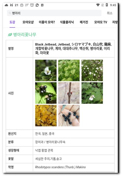 여름나무, 봄나무, 겨울나무, 가을 나무 할 것 없이 꽃나무 이름 찾기를 쉽게할 수 있는 핸드폰 앱으로써 모야모를 사용해서 통합검색에서 쉽게 검색을 하게 되었다.