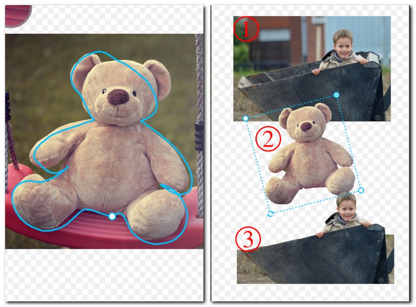 사진 배경을 제거하고 원하는 다른 사진이나 배경으로 대체할 수도 있다. 하나의 사진에서 동물의 얼굴을 자르고 친구의 사진 위에 놓는것도 가능하다.