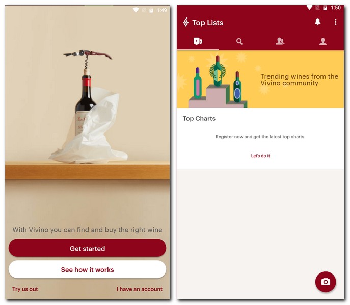 현재 top lists에 올라와 있는 와인을 검색할 수도 있는데, 당연히 회원가입을 해야 데이터가 저장되고 관리도 잘 된다. 본인인 마셔본 와인중 에 마음에 드는 와인의 모습을 촬영해서 트위터나 페이스북, 인스타그램 같은 sns에 사진 올리듯이 업로드가 된다.